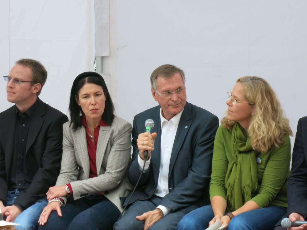 Johannes Singhammer diskutiert auf dem Corso Leopold zum Thema "Euro". Links neben ihm Roland Stigge (Linke) und Ruth Hohenadl von der FDP und rechts die Grünen-Bundestagskandidatin Doris Wagner. Die Singhammer-Position ist dabei klar: Keine Schulden-Union, keine Euro-Bonds, keine Vergemeinschaftung von Schulden, aber faire Partnerschaft in der Europäischen Union. Die ausführliche Position von Johannes Singhammer finden Sie unter Medien / Singhammer-Kolumne / 11.09.13.
