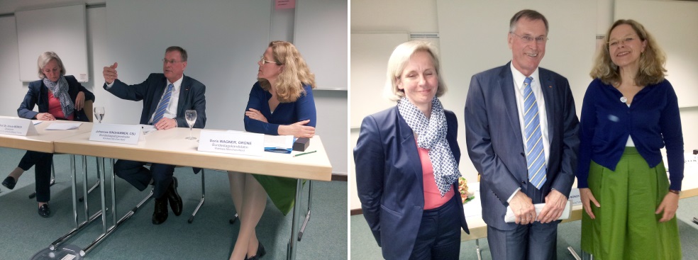 Johannes Singhammer und Doris Wager (Grüne) diskutierten am 29.04.2013 sachlich intensiv und offen miteinander, wie bürgerschaftliches Eintreten in der Zukunft aussehen wird. Die Direktorin der Akademie für politische Bildung Prof. Dr. Münch (jeweils links im Bild) moderierte den Abend. Eine gelungene Veranstaltung mit vielen interessanten Denkanstößen in alle Richtungen.