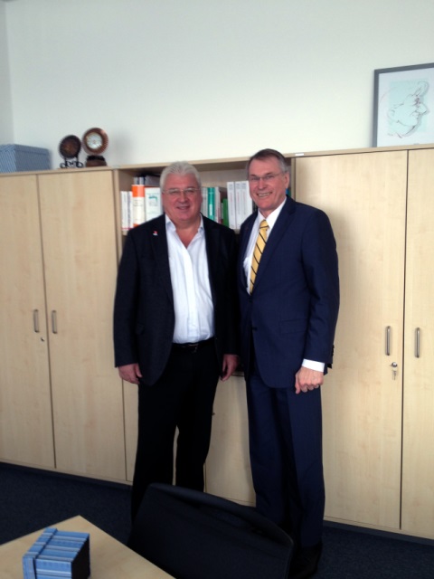 Johannes Singhammer traf sich mit dem Vorsitzenden des MTU-Konzernbetriebsrates Hillreiner im MTU-Werk im Münchner Norden. MTU liegt an der Weltspitze bei der Produktion von High-Tech-Turbinen für Flugzeuge. Bei dem Gespräch standen die Arbeitnehmer-Interessen wie auch Fragen einer deutschen Industriepolitik im Mittelpunkt.