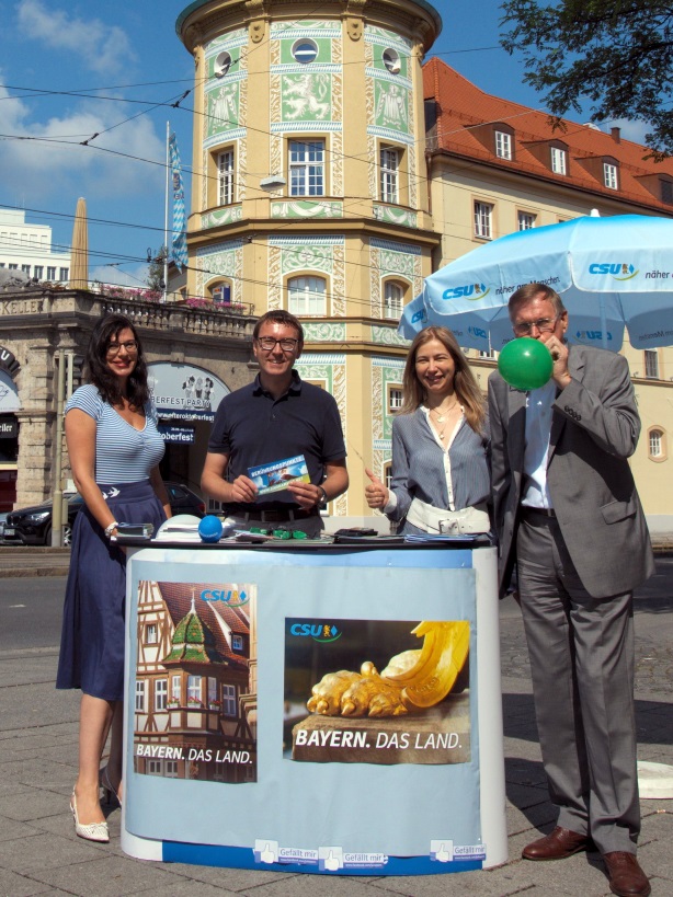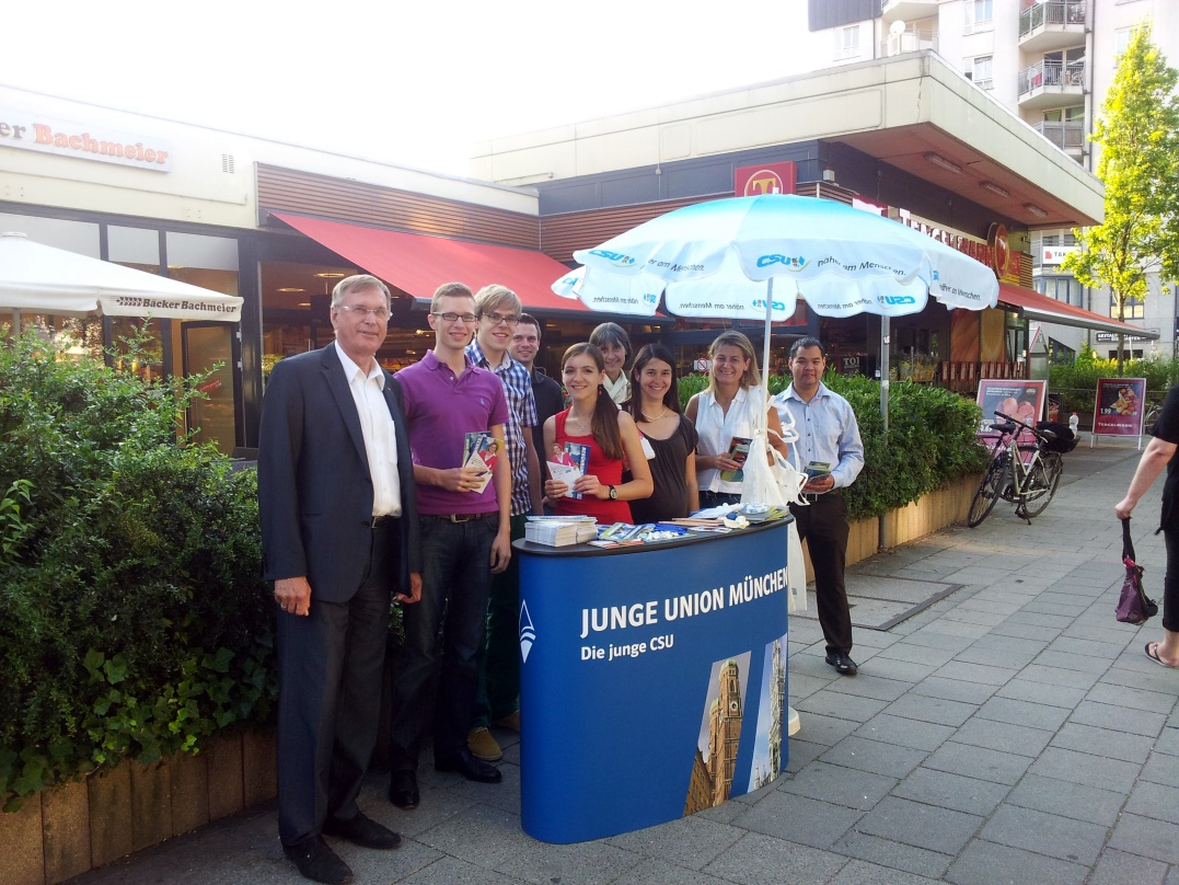 Trotz Urlaubszeit läuft der Bundestagswahlkampf natürlich weiter mit voller Kraft. Johannes Singhammer besuchte am Wochenende Infostände und Sommerfeste der CSU. Das Bild zeigt einen Infostand am Stiglmaierplatz und bei der Jungen Union München-Nord in Milbersthofen.