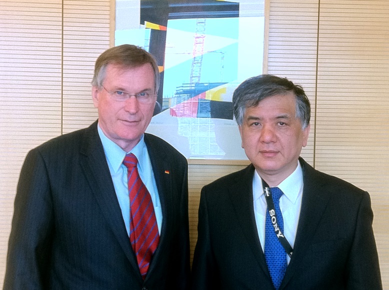 Kenji Okada, der Gesandte Japans in Berlin, informierte Johannes Singhammer über die Ziele der neuen japanischen Regierung, insbesondere im Bereich der Wirtschafts- und Finanzpolitik.