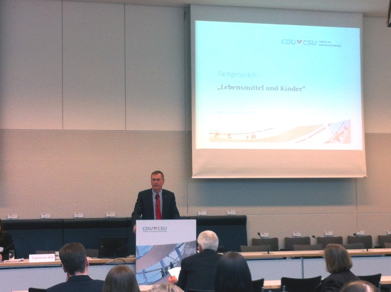 Johannes Singhammer eröffnete als Stellvertretender Fraktionsvorsitzender das Fachgespräch der Unions-Fraktion zum Thema Lebensmittel und Kinder am 25.02.2013. Gesunde Ernährung ist die beste Startchance in ein gesundes Leben.
