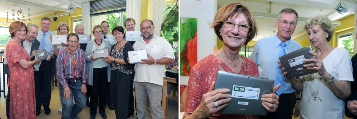 Die Stiftung Digitale Chancen und E-Plus stellen mehrere Tablet-Computer für die Senioren-Computerschule im ASZ-Moosach zur Verfügung. Johannes Singhammer:" Tablet-Computer sind wegen der einfachen Handhabung und der großen Bildschirmfläche und der Berührungssteuerung besonders gut auch für für Senioren geeignet. Dabei sein im Netz und Informationen für den Alltag nutzen."