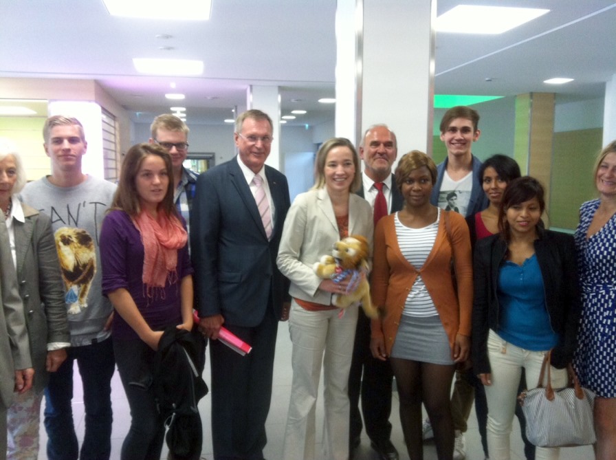 Dr. Kristina Schröder hat auf Einladung von Johannes Singhammer die Bundesfreiwilligendienstler und FSJ-ler besucht. Demnächst steht der 100.000 Bundesfreiwilligendienstler an. Johannes Singhammer schenkte der Ministerin zur Erinnerung einen bayerischen Löwen für die kleine Tochter Lotta.