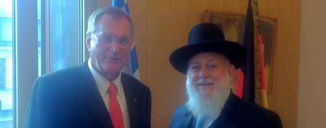 Bundestagsvizepräsident Johannes Singhammer hat in seinen Berliner Amtsräumen Oberrabiner Ehrenberg am 09.09.2014 zu einem intensiven Meinungsaustausch getroffen. "Solidarität mit Israel zu zeigen, ist mir wichtig," betonte Singhammer.