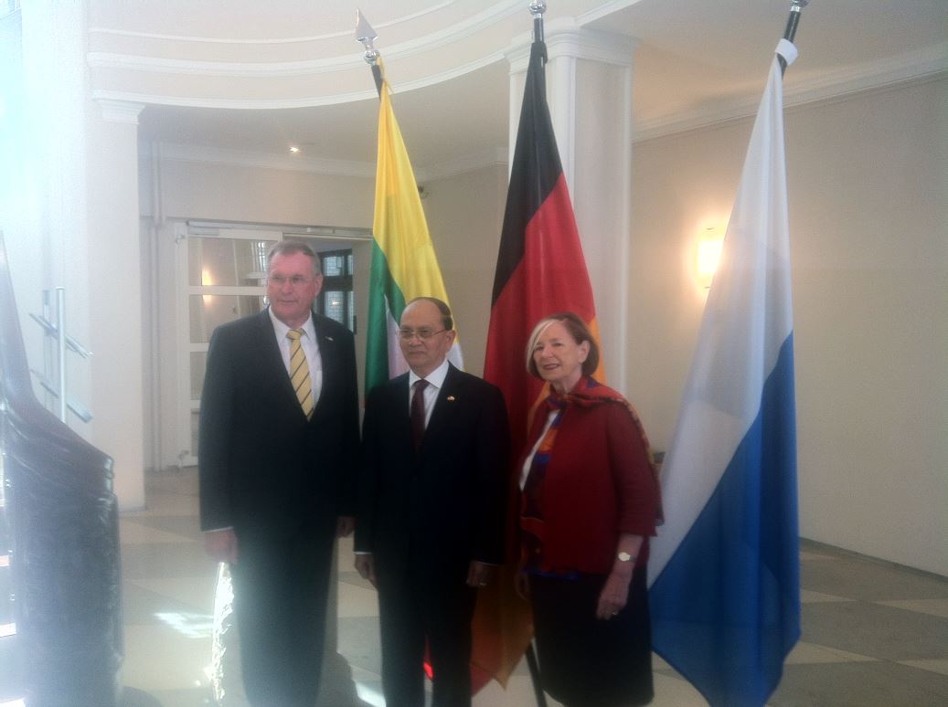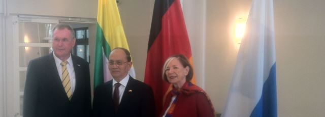 Bundestagsvizepräsident Johannes Singhammer traf am 04. September 2014 Staatspräsidenten Thein Sein und weitere Kabinettsmitglieder in Berlin. Im Mittelpunkt des Gesprächs stehen der politische Tansformationsprozess Myanmars und und Wirtschaftsfragen. Es ist der erste Staatsbesuch seit über 50 Jahren. Das Bild zeigt Bundestagsvizepräsident Singhammer, Präsident Sein und die Vorsitzende der Hanns Seidel Stiftung Männle.