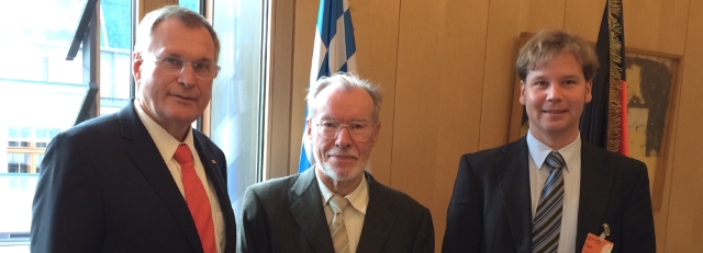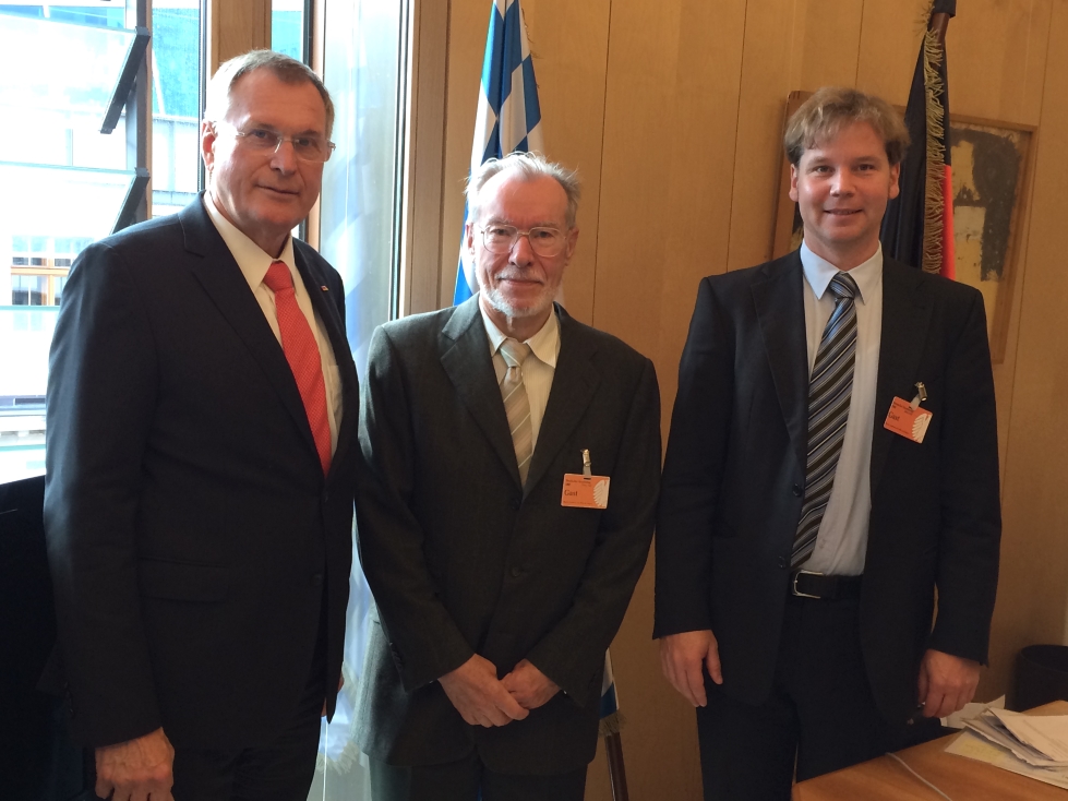 Mit den Vorstandsmitgliedern des Vereins Deutsche Sprache Dr. Klatte und Dr. Voslamber besprach Bundestagsvizepräsident Johannes Singhammer am 23.09.2014, wie man die Verwendung der deutschen Sprache im Ausland und in Deutschland weiter fördern kann. Singhammer sprach sich gegen das immer stärkere Voranschreiten der englischen Sprache aus.