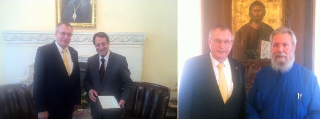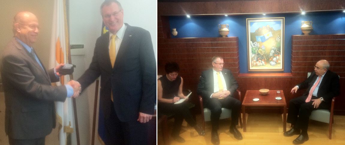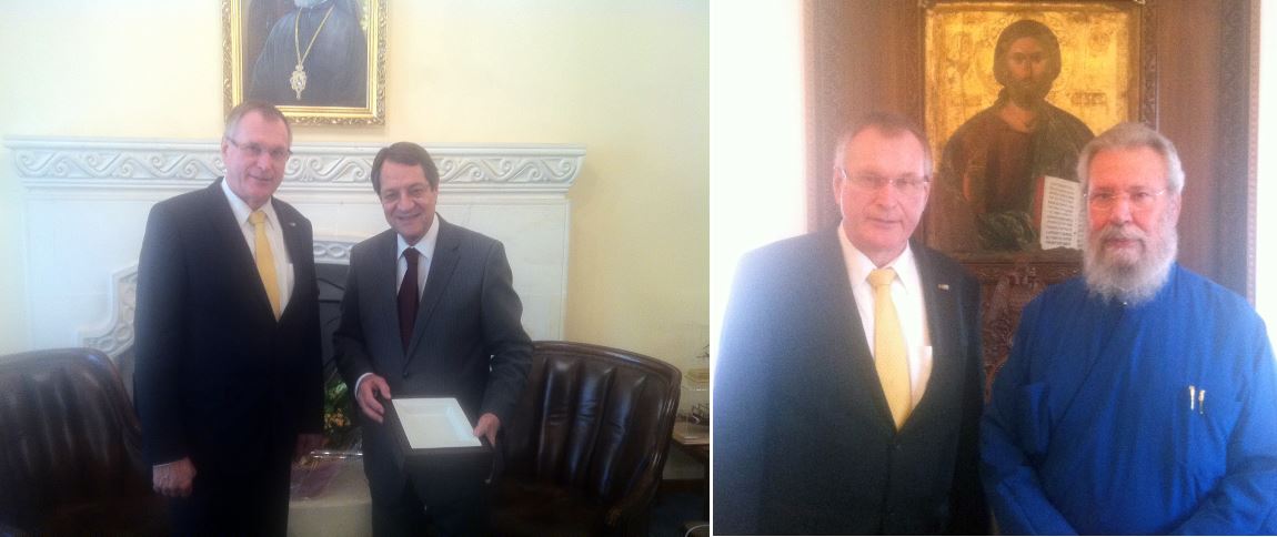Vizepräsident Singhammer hat am 31.10.2014 den zyprischen Außenminister Kassoulides, Parlamentspräsidenten Omiru, Staatspräsident Anastasiades und Erzbischof Chrysostomos in Nicosia getroffen. Dabei standen Fragen der politischen und wirtschaftlichen Zusammenarbeit im Mittelpunkt, aber auch die Probleme durch die Teilung des Landes.