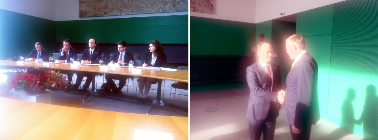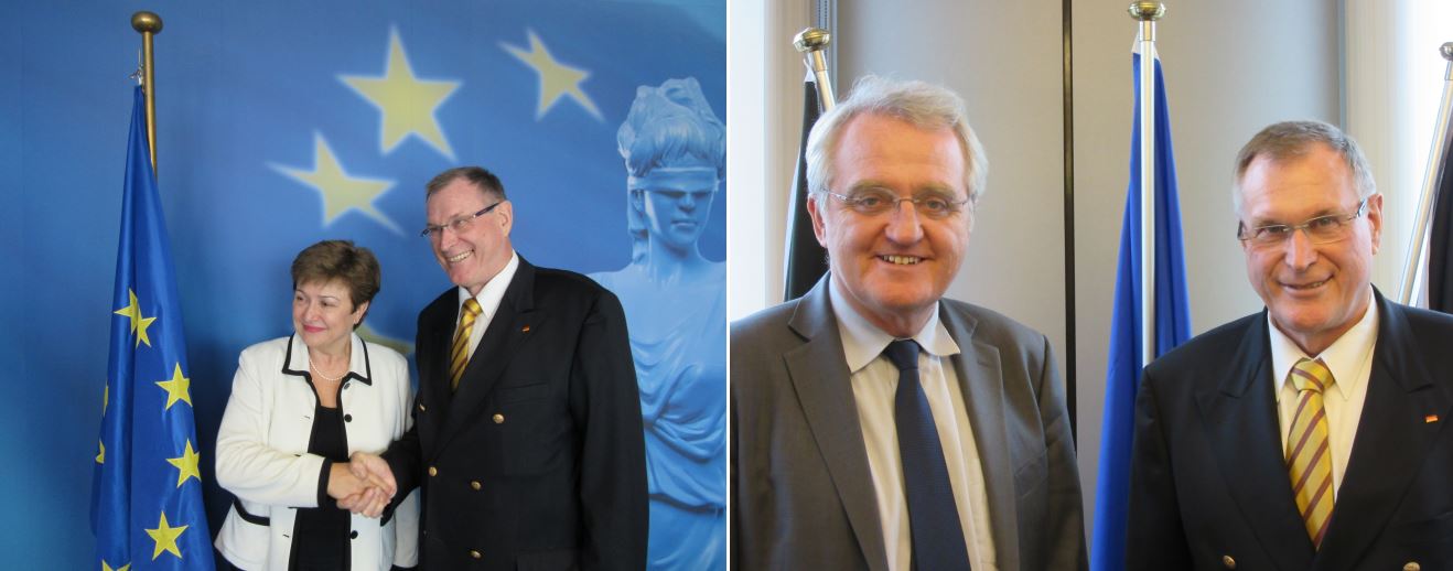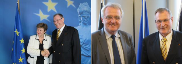Bundestagsvizepräsident Johannes Singhammer führte am Donnerstag, den 20.11.2014 hochrangige Gespräche zur Durchsetzung der Nutzung der deutschen Sprache in den EU-Institutionen. Er traf sich dazu in Brüssel als erster deutscher Vertreter mit der neugewählten Vizepräsidentin der EU-Kommission Dr. Kristalina Georgieva, die zuständig für Haushalt, Personal und das Sprachenwesen ist, und dem Vizepräsidenten des EU-Parlamentes Rainer Wieland (siehe Bilder). Treffen mit Dr. Martin Selmayer, dem Kabinettschef des EU-Kommissionspräsidenten, und dem neuen Ständigen Vertreter Deutschlands bei der EU Reinhard Silberberg vervollständigten die Termine. Singhammer forderte die gleichzeitige Vorlage der EU-Dokumente in amtlicher deutscher Fassung. Siehe auch unter Medien / Presseberichte (28.11.2014 MM).