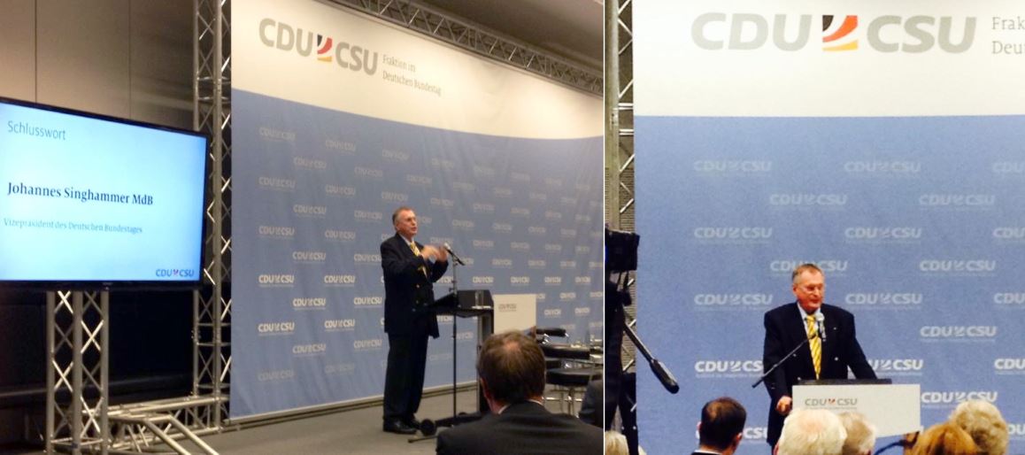 Auf den Kongreß der Unions-Bundestagsfraktion "Das C ist für uns Programm - Menschenrecht Religionsfreiheit - Wie schützen wir verfolgte Christen?" hat Bundestagsvizepräsident am 16.09.2014 im Berliner Reichstag gesprochen. Singhammer betonte, wie wichtig es ist, die zunehmende Christenverfolgung immer wieder im Lichte der Öffentlichkeit anzuprangern, denn internationale Aufmerksamkeit und politisches Handeln kann den Menschen helfen.
