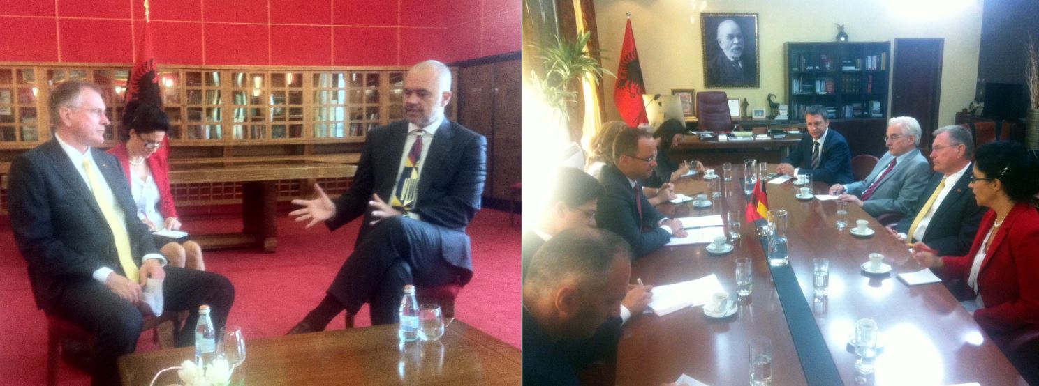 Bei seinem Albanien-Besuch traf Bundestagsvizepräsident Johannes Singhammer am 21.08.2014 mit dem albanischen Premierminister Edi Rama und dem Außenminister Ditmir Bushati zusammen.